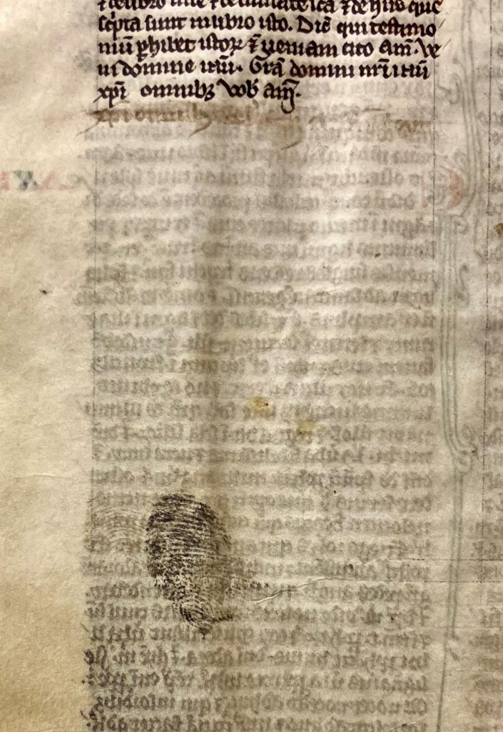 Den mest spännande proveniensen, en helt utan namn, kommer dock från den person som sannolikt var bibels skrivare. På sista sidan, när arbetet efter lång tid, troligen 2-3 år, till slut, äntligen var klart, råkade skrivaren trycka ett bläckfläckat finger eller tumme på pergamentet. Ett fingeravtryck pryder nu denna sida, en hälsning från 1200-talet till oss idag.