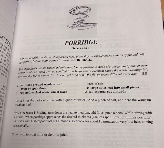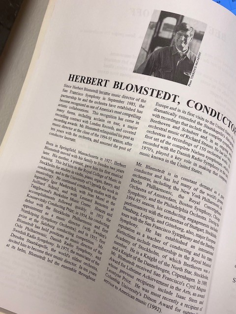 Boken återfinns i Herbert Blomstedt Collection, under den kanske något överraskande avdelningen Kochbücher, som bland andra kulinariteter innehåller en rad vegetariska recept med färgbilder från 70-talet, ett flertal exempel på livsmedel inkapslade i gelé, och David Reizts antologiska Culinary Harmony – Favorite Recipes of the World’s Finest Classical Musicians, där en rad framstående musiker och dirigenter från hela världen får presentera sin favoriträtt – allehanda läckerheter med tillhörande recept.